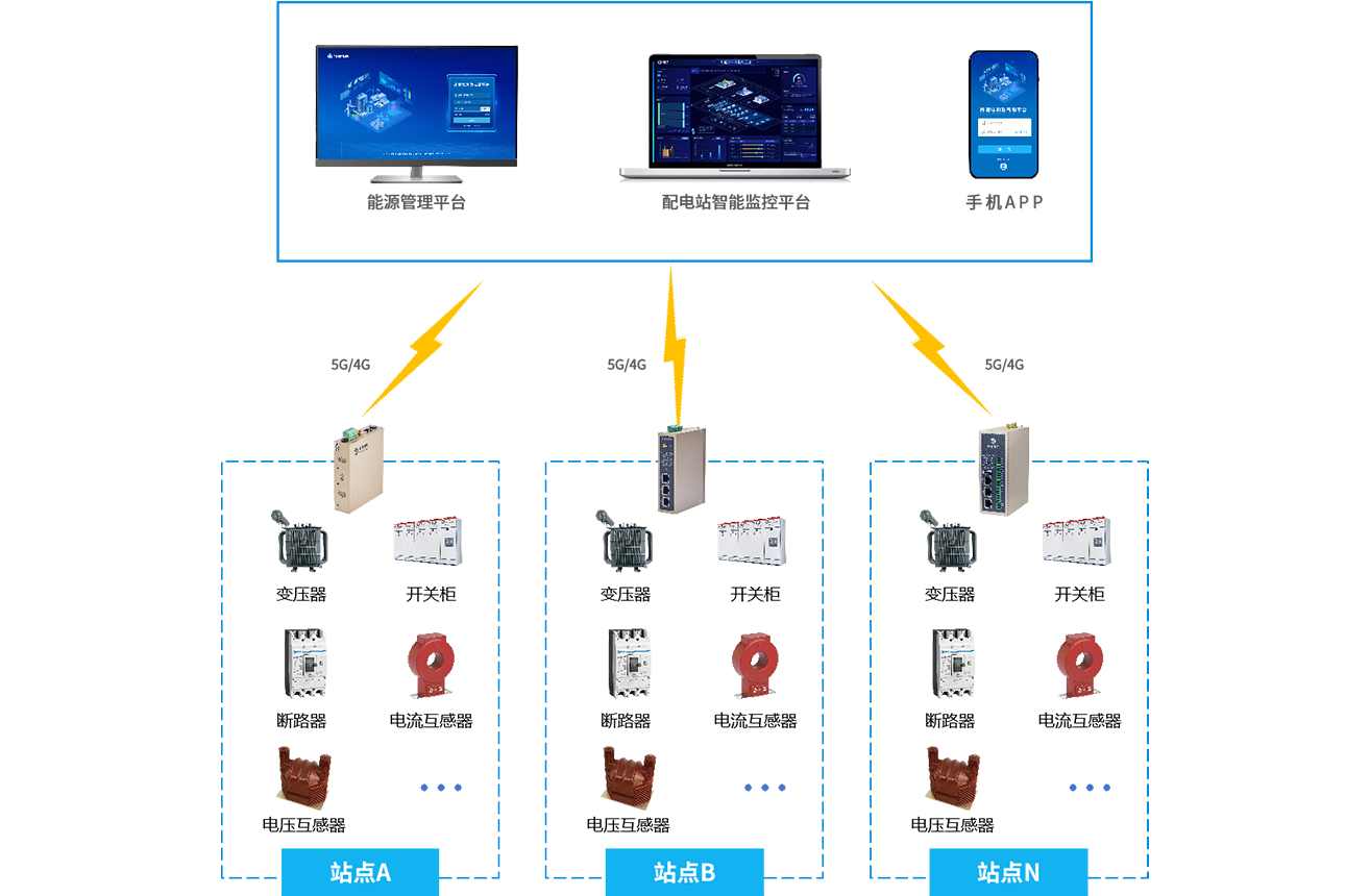 顺利获得金年会jinnian的能源电力网关采集配电站的各类设备(如变压器、开关柜、断路器等)将采集到的配电数据(如电流、电压、温度、湿度等)传输至配电站智能监控平台。平台实时监测设备状态,当出现异常或故障时及时发出预警,并给予故障诊断和处理指导。同时具备电能质量监测功能,支持远程运维操作和负荷优化管理。