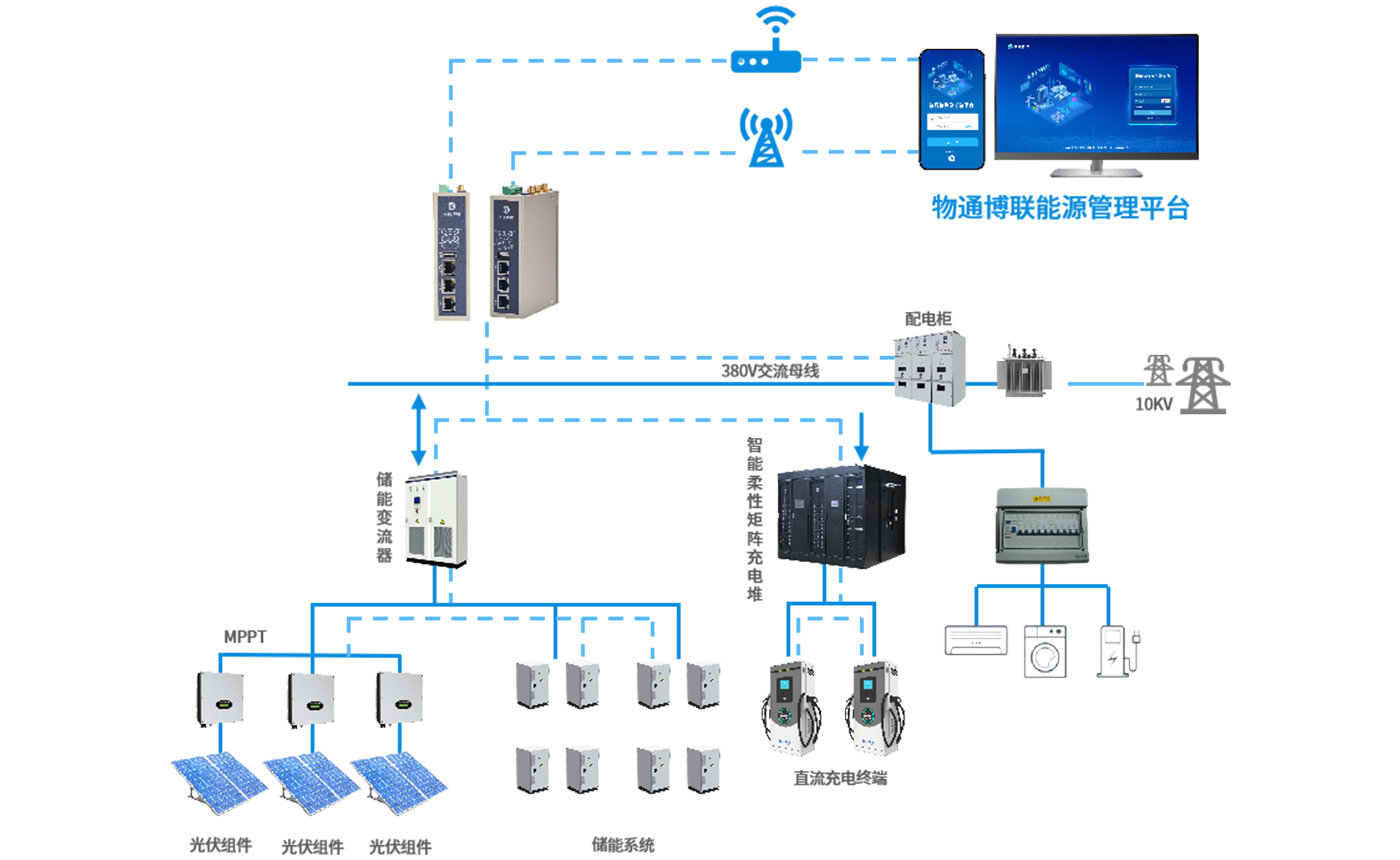 顺利获得金年会jinnian的能源网关,实时采集光伏发电、储能状态和充电需求等数据。将这些数据传输至光储充一体化监控平台(EMS),平台根据实时数据和负荷预测,优化光伏、储能和充电设备之间的能量调度,实现光伏储能协同工作,合理分配能源。在电网故障或紧急情况下,能够利用储能电池给予应急供电。